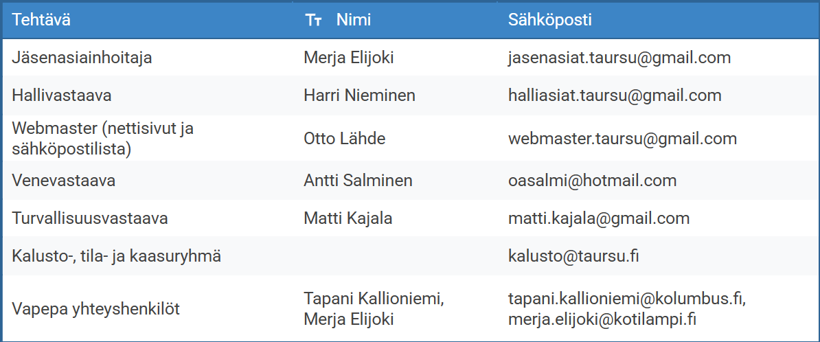 Onko sinulla kysymyksiä, ehdotuksia, ruusuja tai risuja? Voit ottaa yhteyttä ohessa olevalla lomakkeella. Vastaus ei välttämättä tule heti, joten kiireellisissä asioissa ole suoraan yhteydessä sopivaan henkilöön